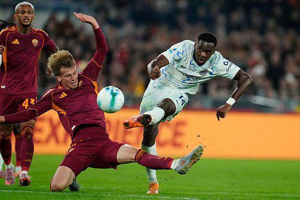应该说博尼这几个进球都不算太难,跟世界波也沾不上边,但这已经足够了,他只需要在和主力轮换的时候,或是替补登场上顺利完成一些常规进球,足以为整个赛季做出正面的贡献。本场的进球来自巴雷拉的长距离直塞,显然罗马的后卫们低估了博尼的爆发力,从后排启动,转身向前,刚好不越位,罗马的防线站得太高了,国米过去很少获得这种一脚穿越整条防线的机会,也许是因为对手的谨慎,也许是对图拉姆的速度过于忌惮,博尼在合适的时间出现在合适的位置上,在靠近门将的位置起脚,也是杀了斯维拉尔一个措手不及。
